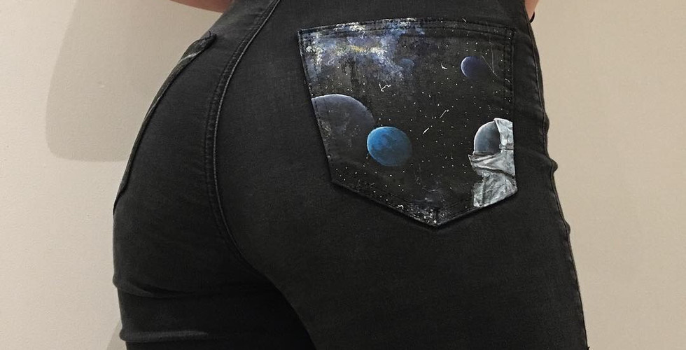 All the jeans are hand painted using acrylic paint, and are available to buy through my Instagram. Prices range from £30 to £45 (including delivery). If interested you can email me or DM me through my Instagram.